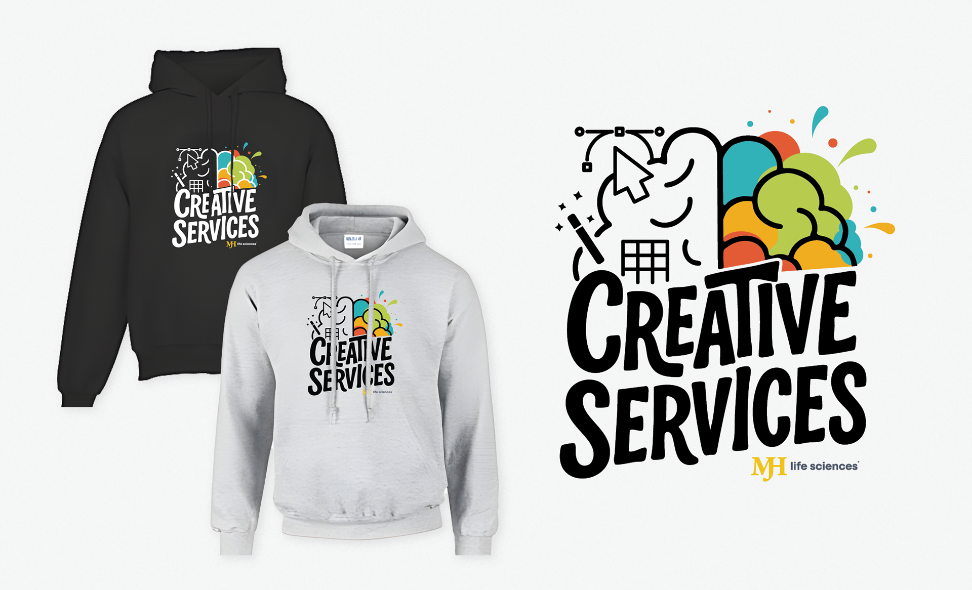 A collection of apparel graphics designed for sweatshirts and t-shirts across various projects.